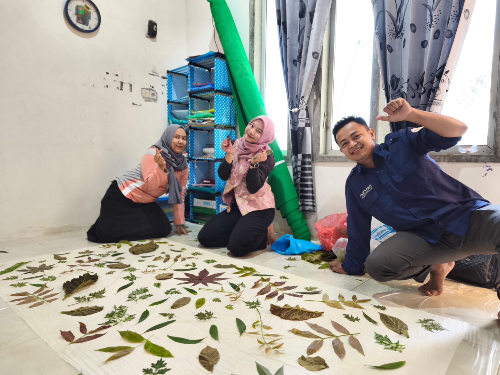 Selama pelatihan, peserta diajak untuk mempraktikkan langsung teknik pencetakan motif daun pada kain, proses pewarnaan alami, hingga tahap pengeringan dan finishing. Antusiasme warga belajar terlihat dari semangat mereka mengikuti setiap sesi dengan penuh perhatian.
