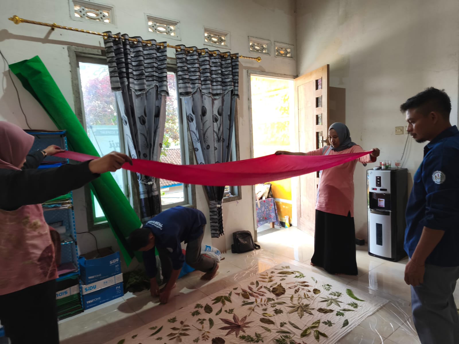 “Kita menggunakan bahan alami dari daun dan bunga yang tersedia di sekitar, tanpa bahan kimia berbahaya. Setiap motif yang dihasilkan bersifat unik dan memiliki nilai seni tersendiri,” tuturnya.