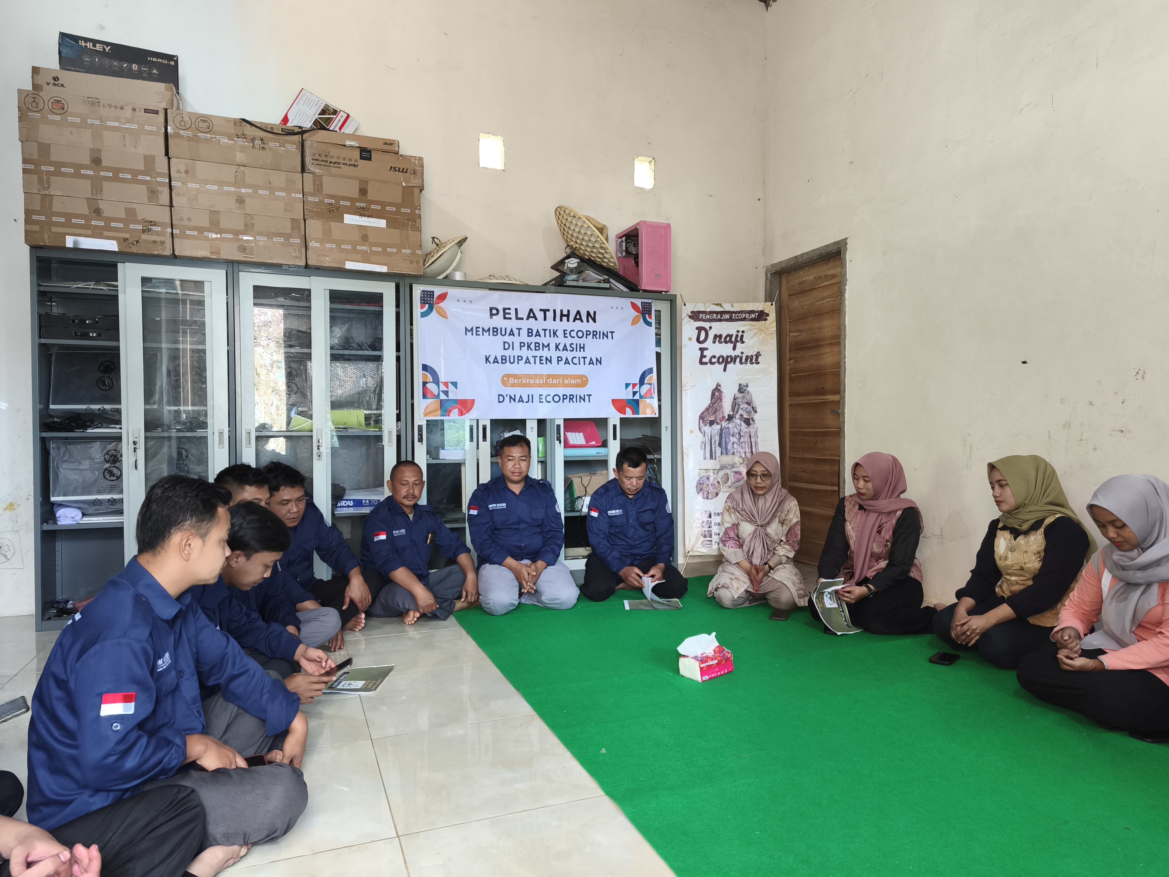Kegiatan yang dilaksanakan di aula PKBM Kasih Pacitan ini diikuti oleh puluhan warga belajar dari berbagai program, termasuk pendidikan kesetaraan paket b dan c  dengan fokus pada pengenalan teknik dasar eco print, pemilihan bahan alami, serta proses pewarnaan ramah lingkungan menggunakan daun, bunga, dan bahan-bahan lokal.